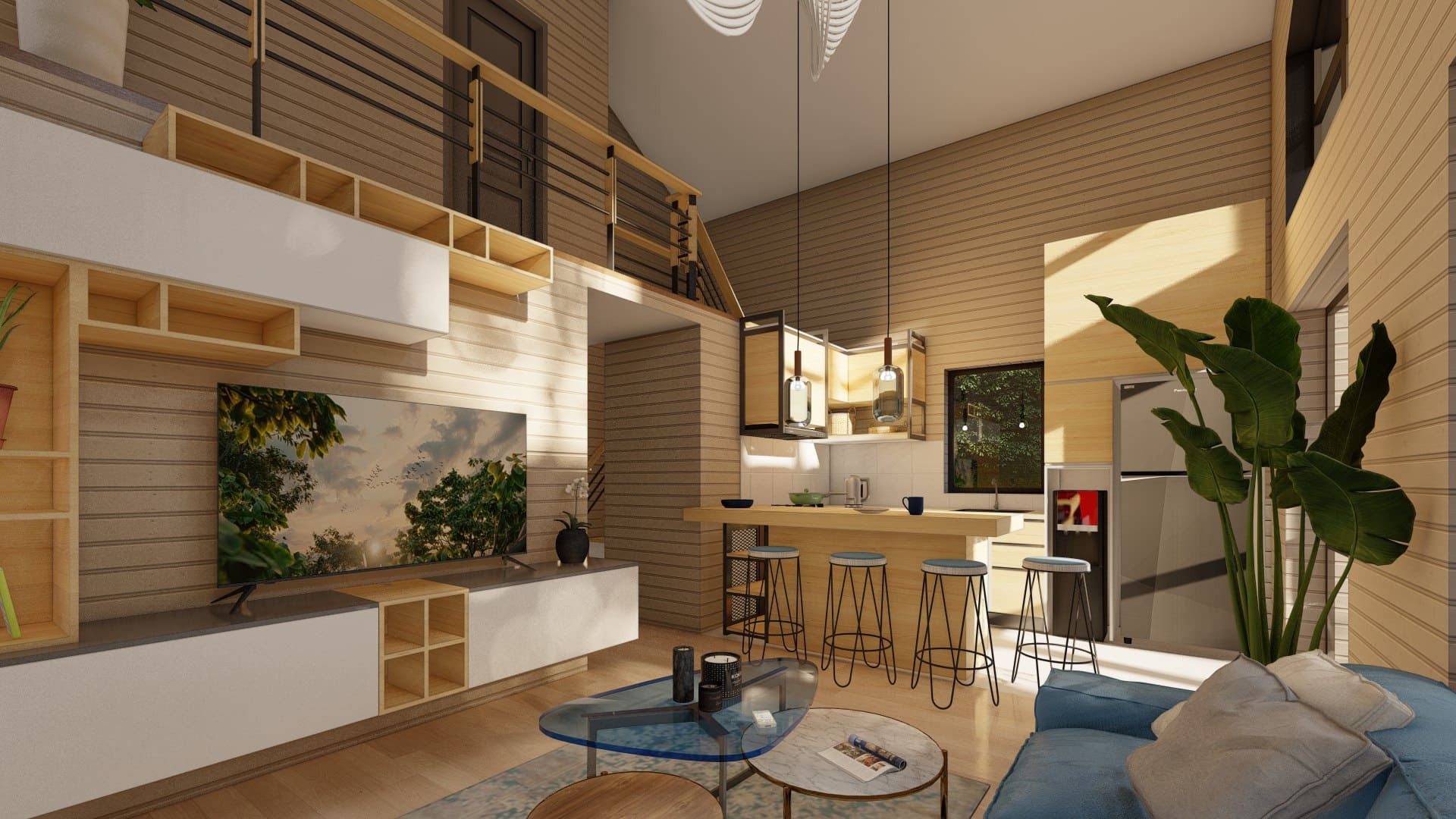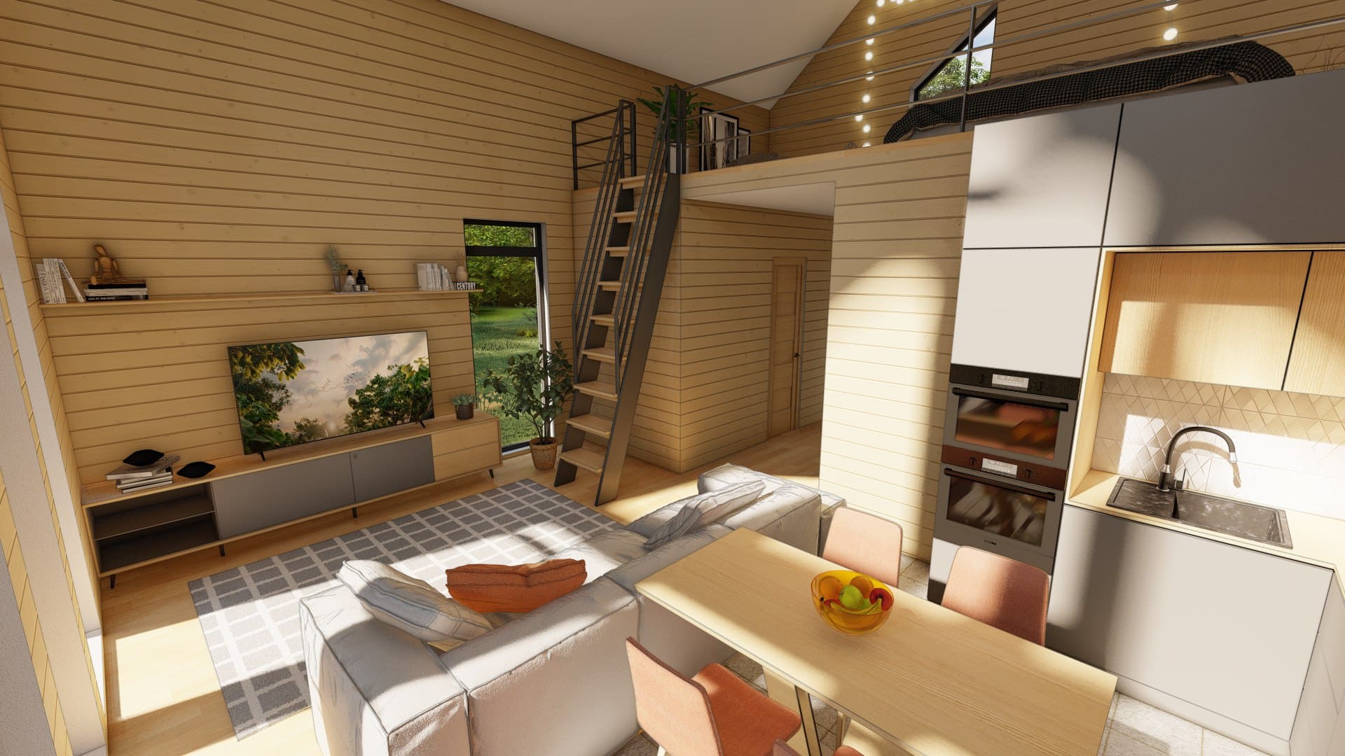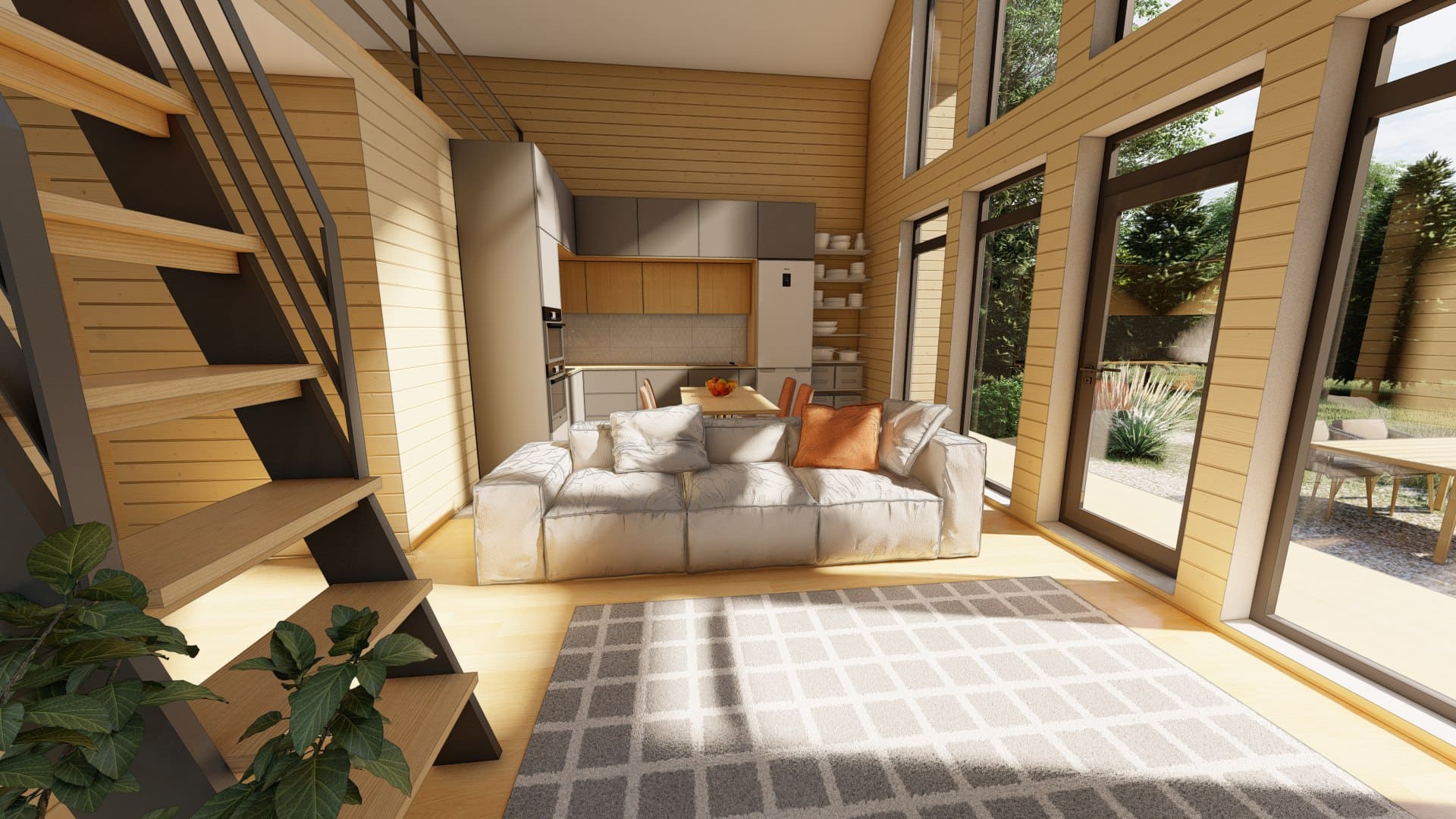 Современный дом в стиле Барн со вторым светом, двумя спальнями, большой кухней-гостиной и антресолью.