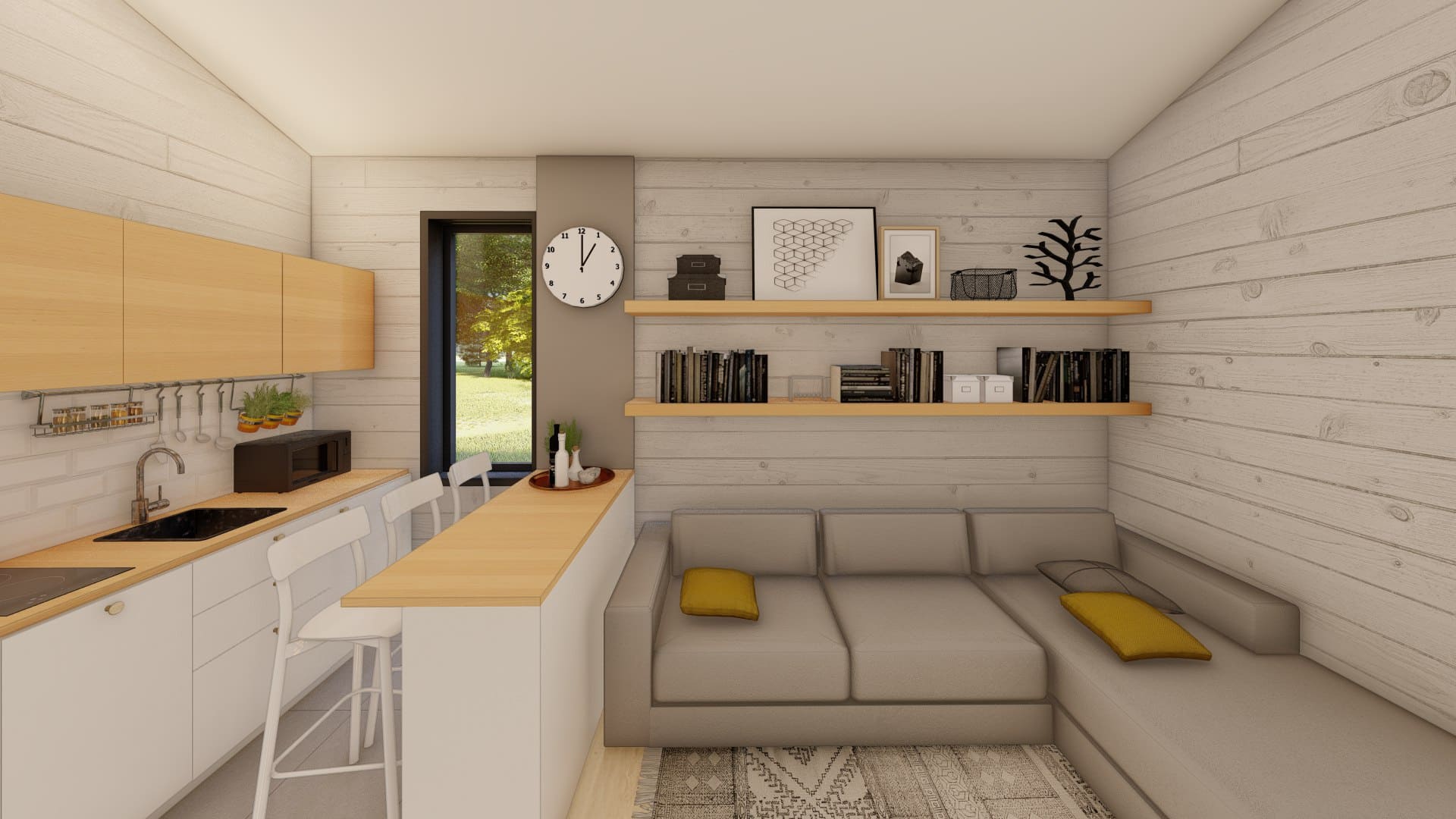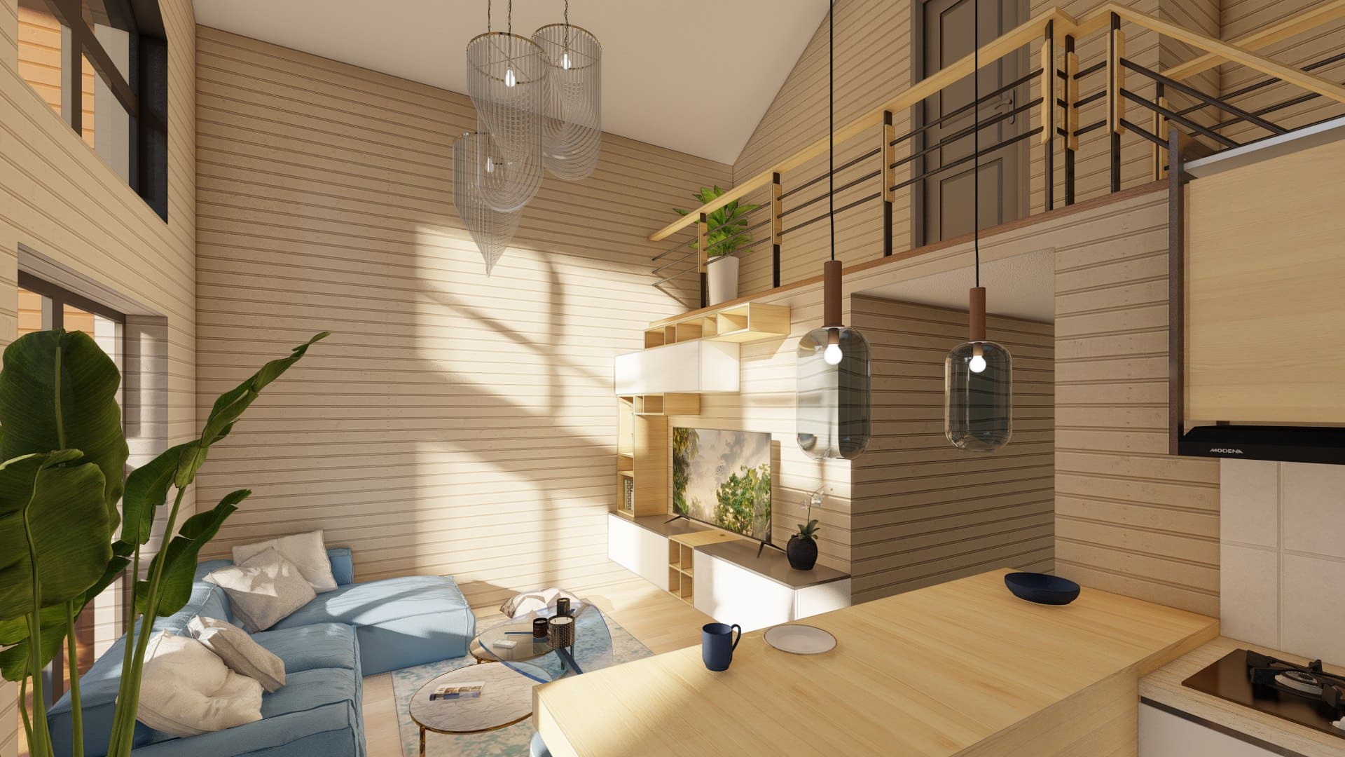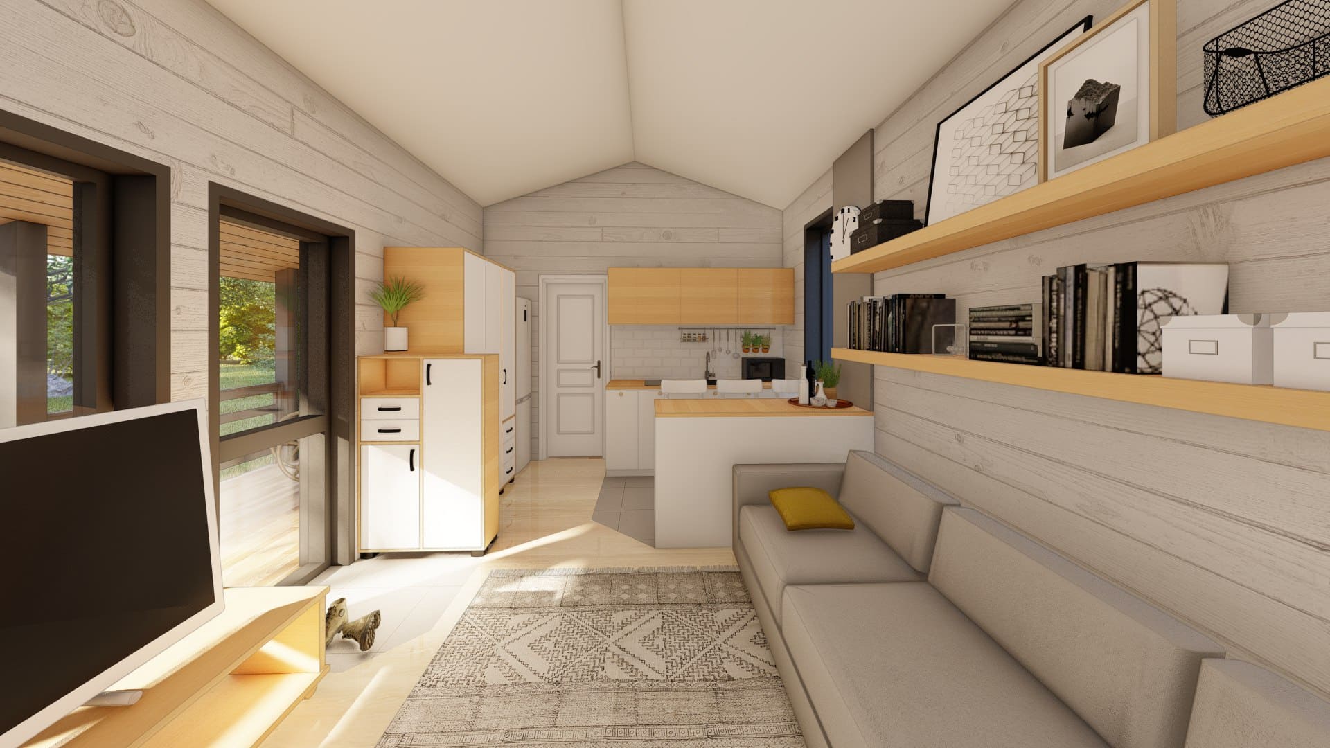 Современный дом в стиле Барн со вторым светом, двумя спальнями, большой кухней-гостиной и антресолью.