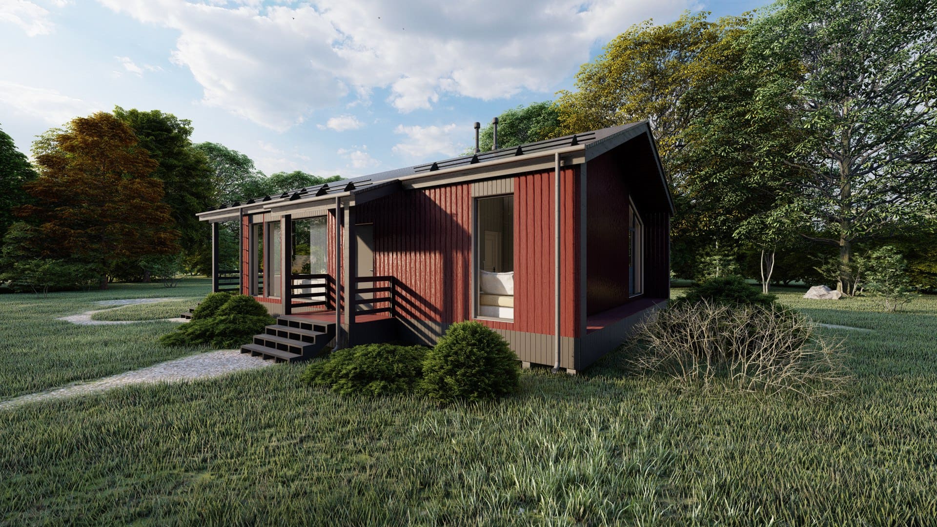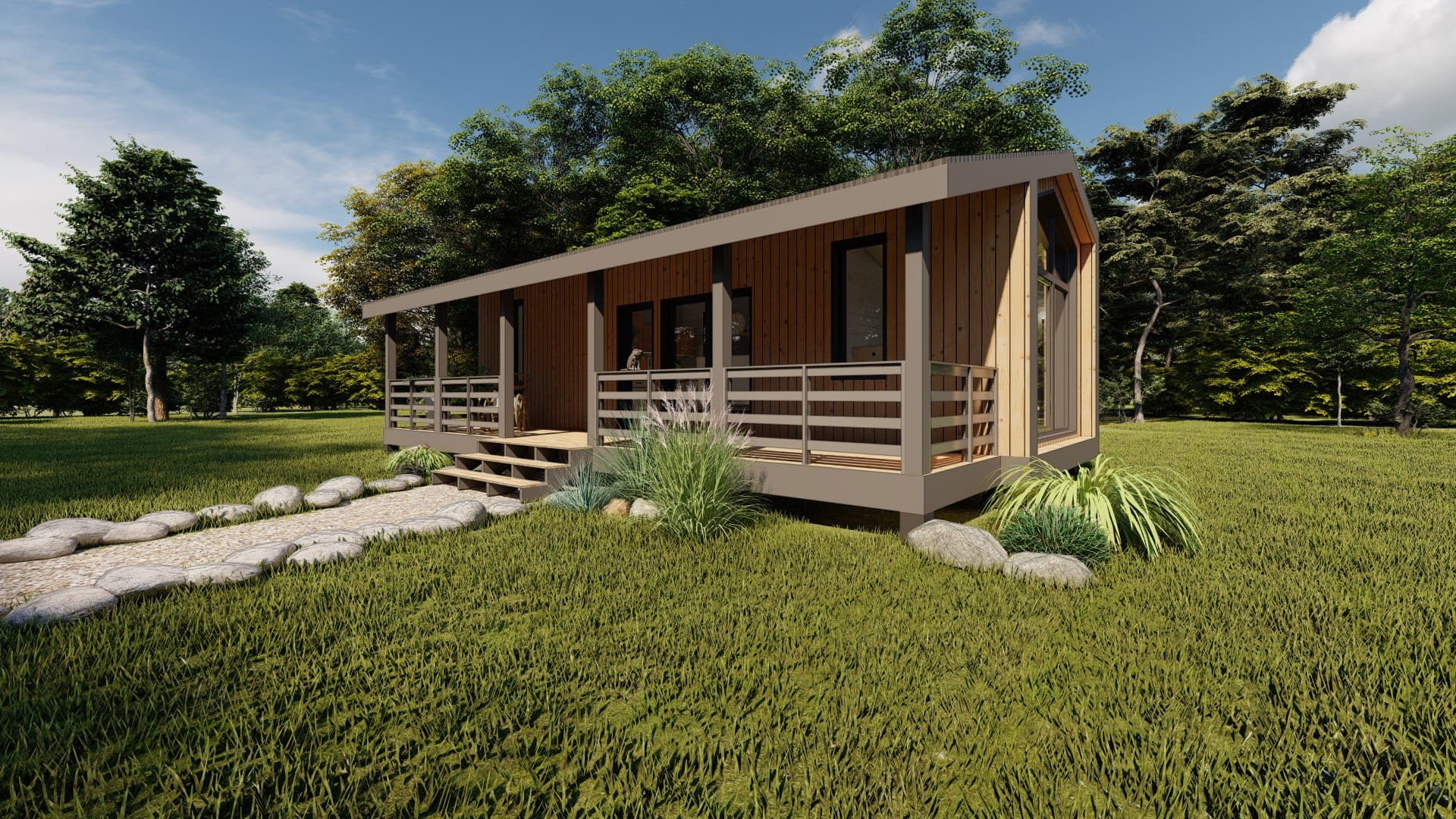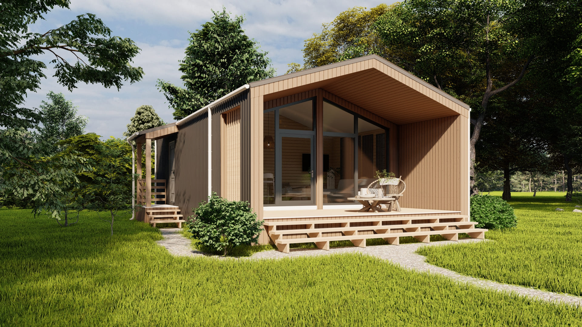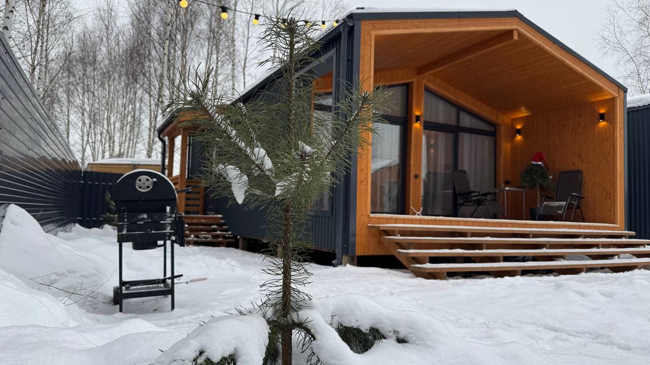 Уютный и просторный дом, для семьи 3-4 человека. В доме есть кухня-гостиная, 2 спальни, 1 санузел и терраса.