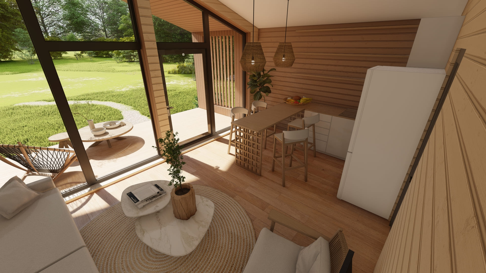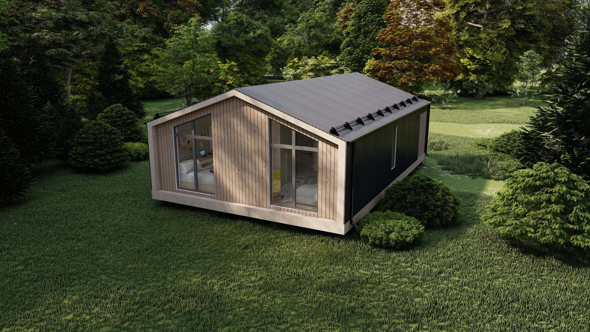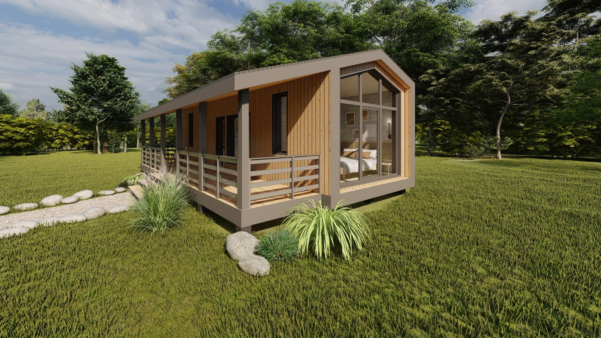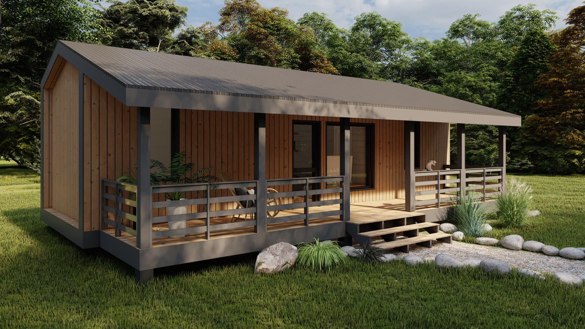 Уютный и просторный дом, для семьи 3-4 человека. В доме есть кухня-гостиная, 2 спальни, 1 санузел и терраса.