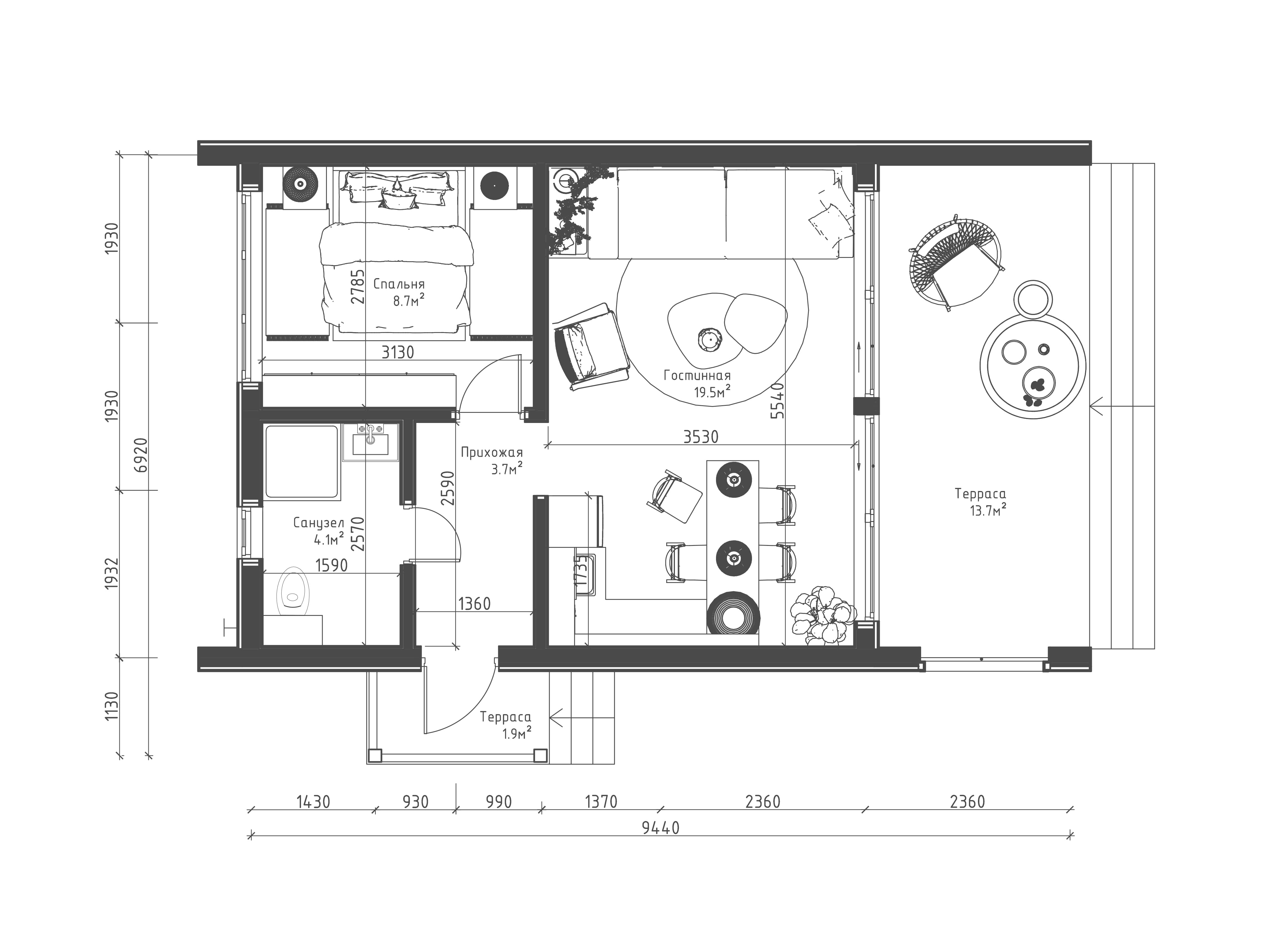 Терраса: 3,8м.