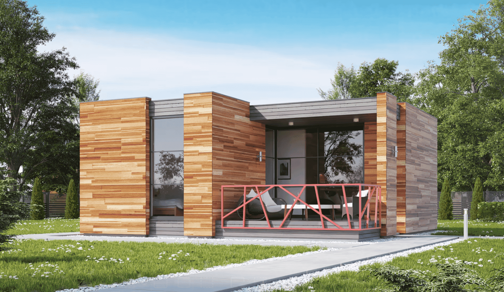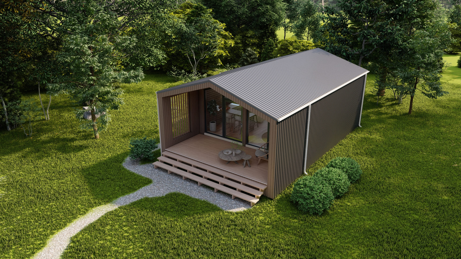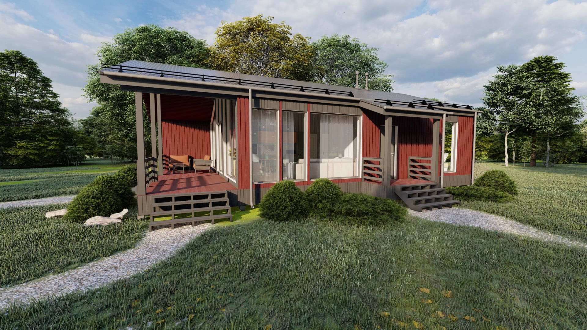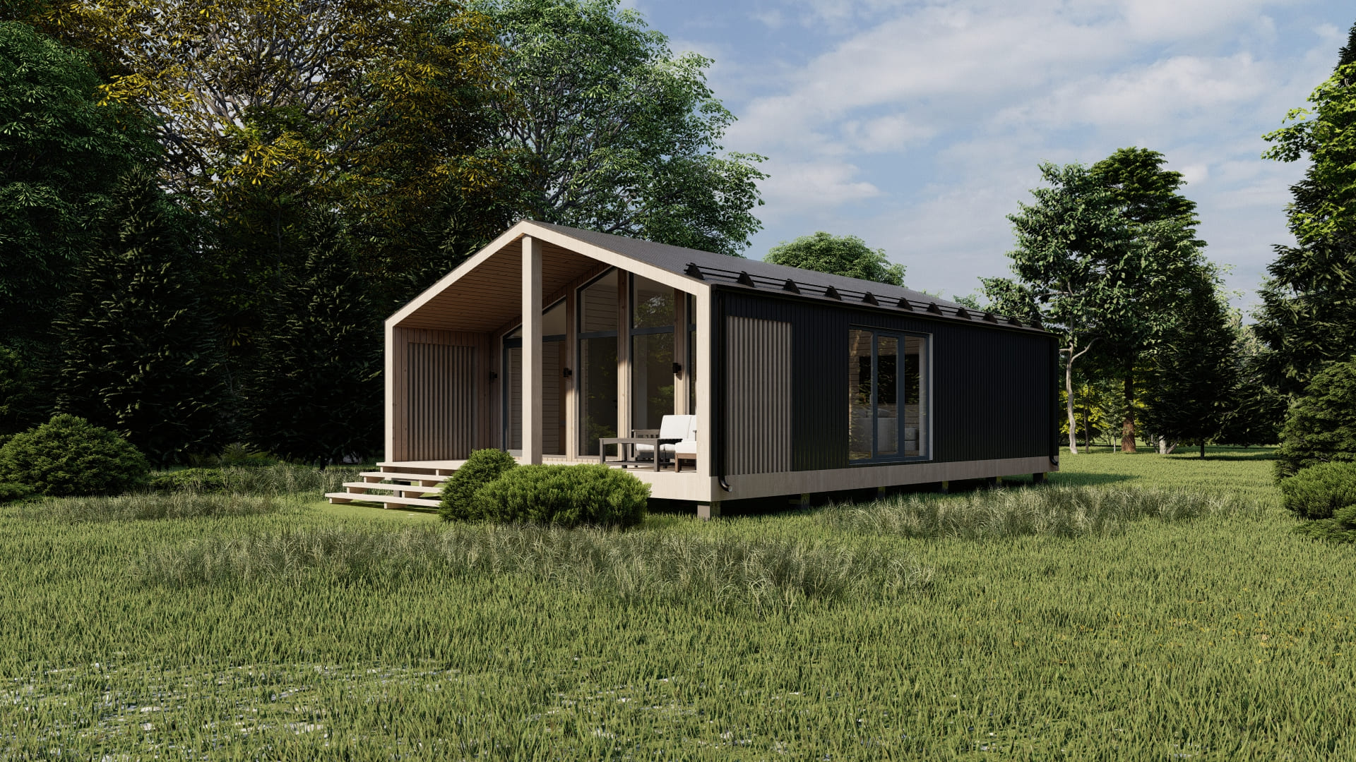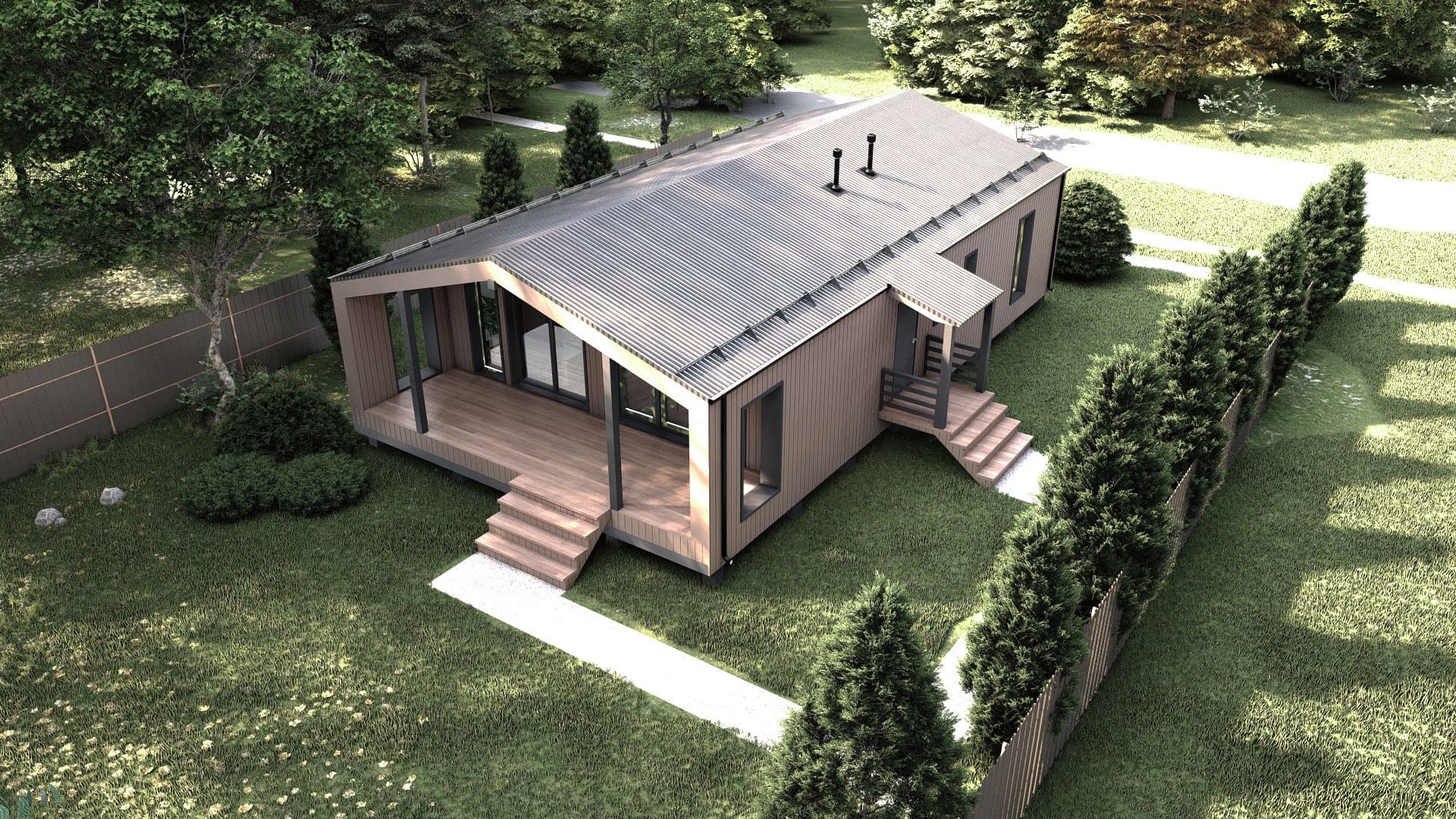 Габариты (Ш*Д*В): 6м * 9м * 6,5м + терраса 3*9м