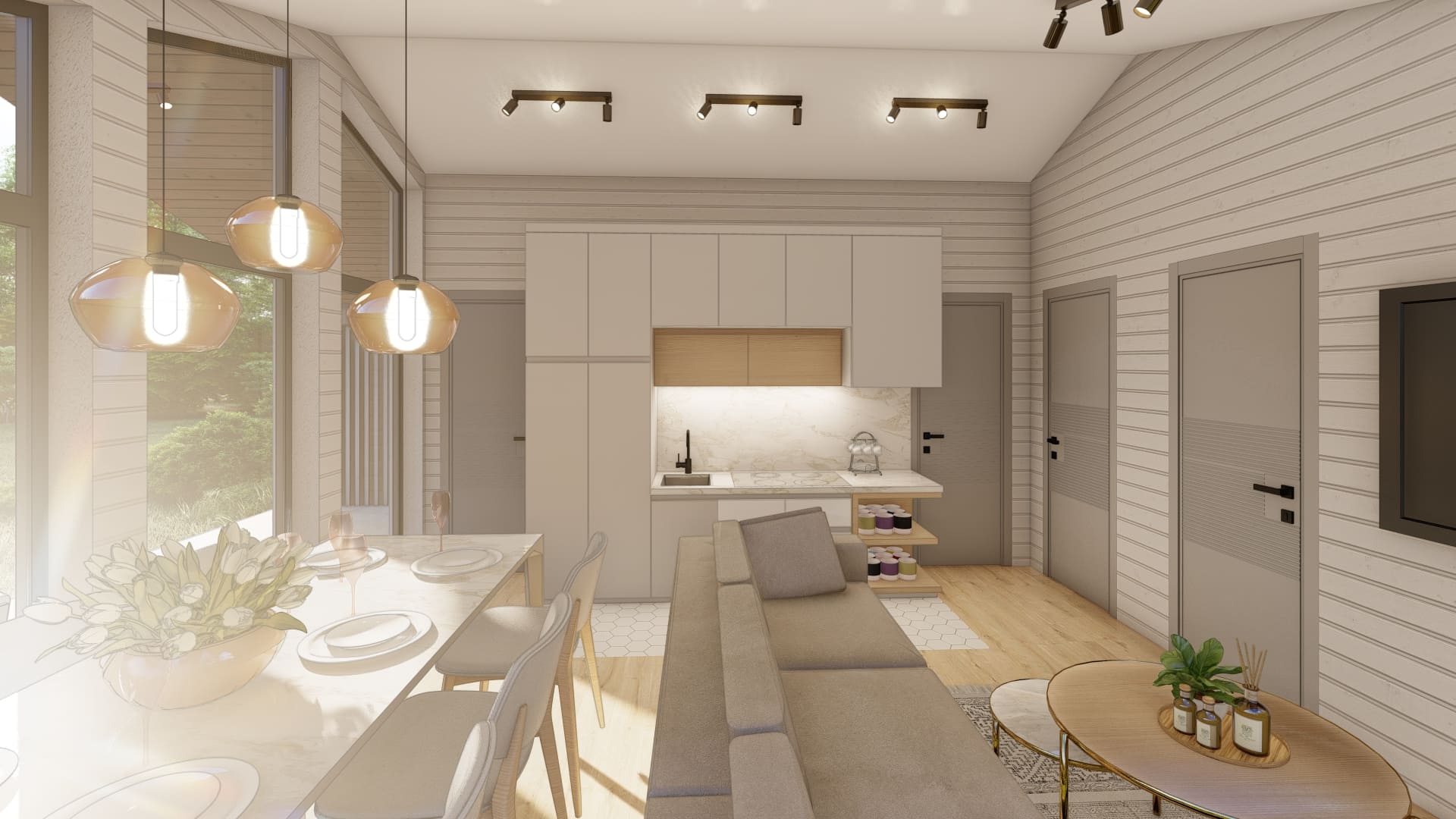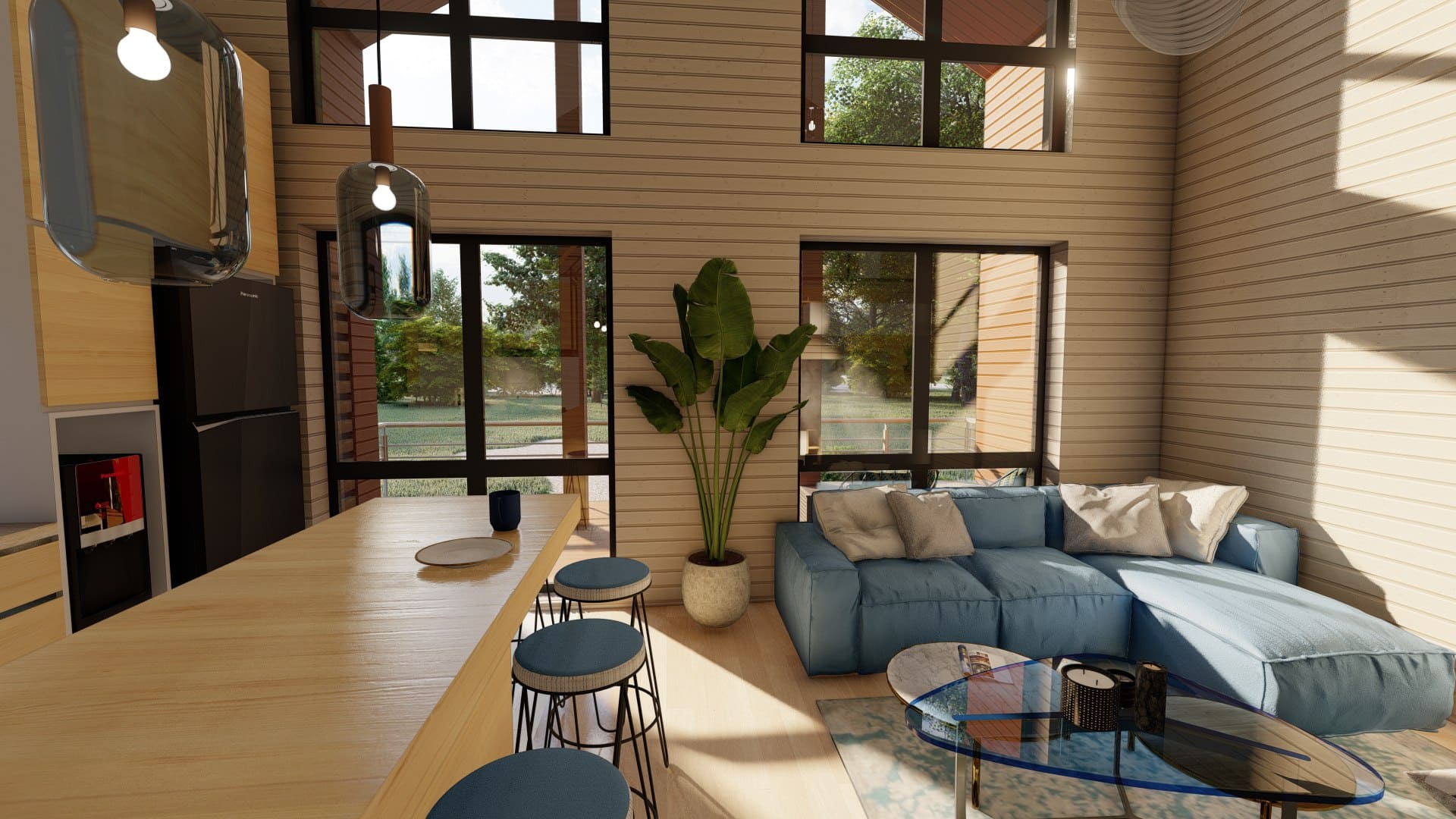Барнхаус — это красивый и практичный дом. Выход на террасу с панорамными окнами, просторные и светлые комнаты. Быстрый срок возведения дома и высокая функциональность.