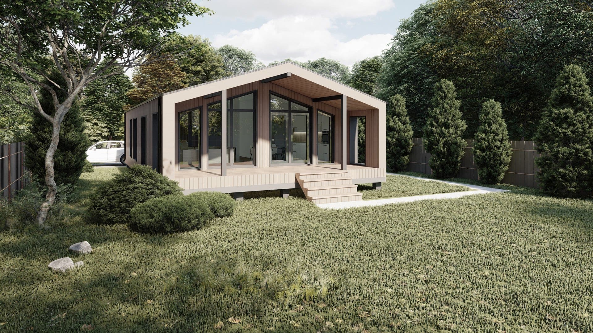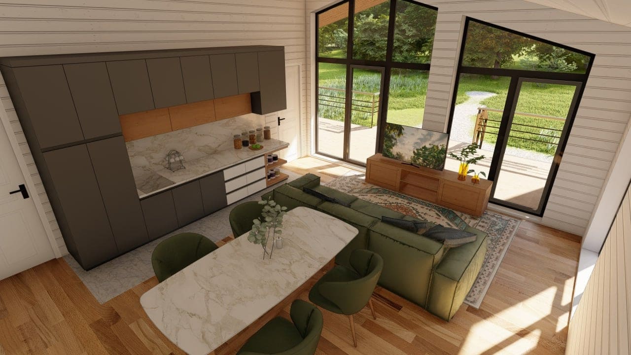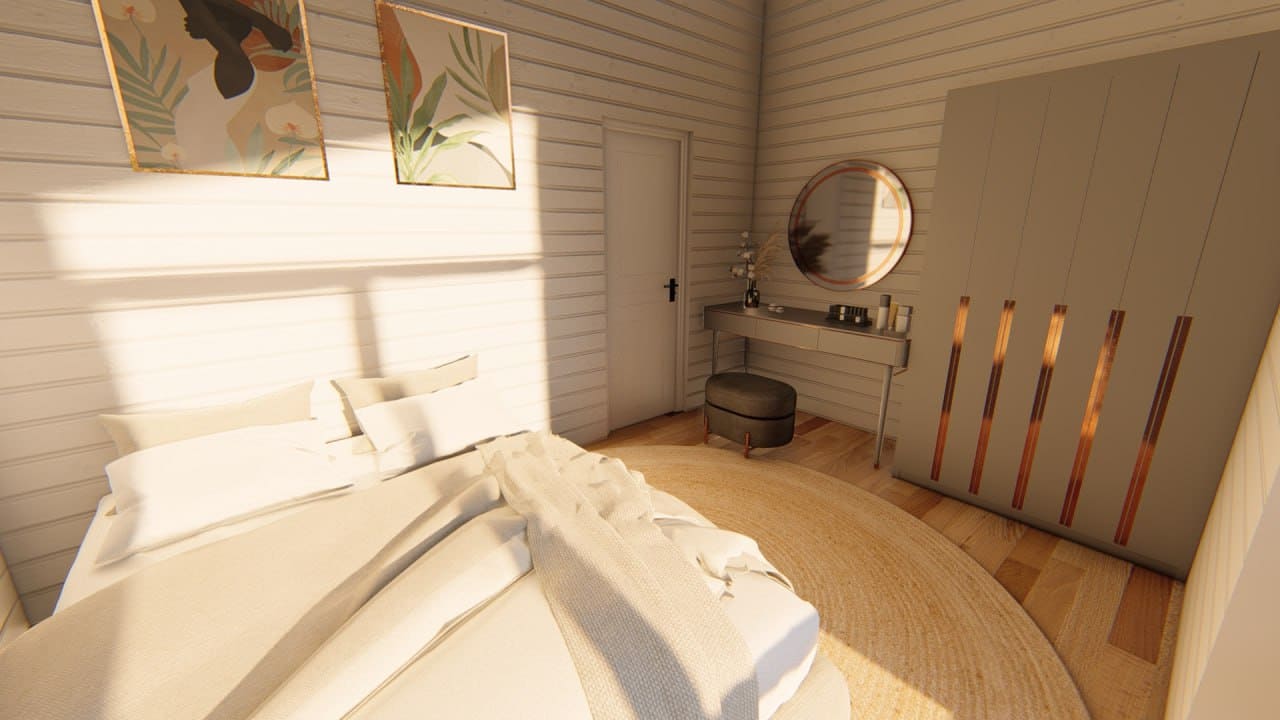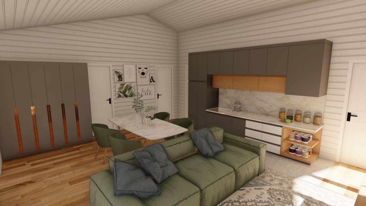 Идеальный вариант для семьи с 1-2 детьми. В уютным и просторном доме есть кухня-гостиная, 2 спальни, 1 санузел и терраса, которую можно использовать местом для семейных посиделок, обедов на открытом воздухе, приема гостей, а также для различных видов досуга, таких как чтение, игры, или просто отдыха.
