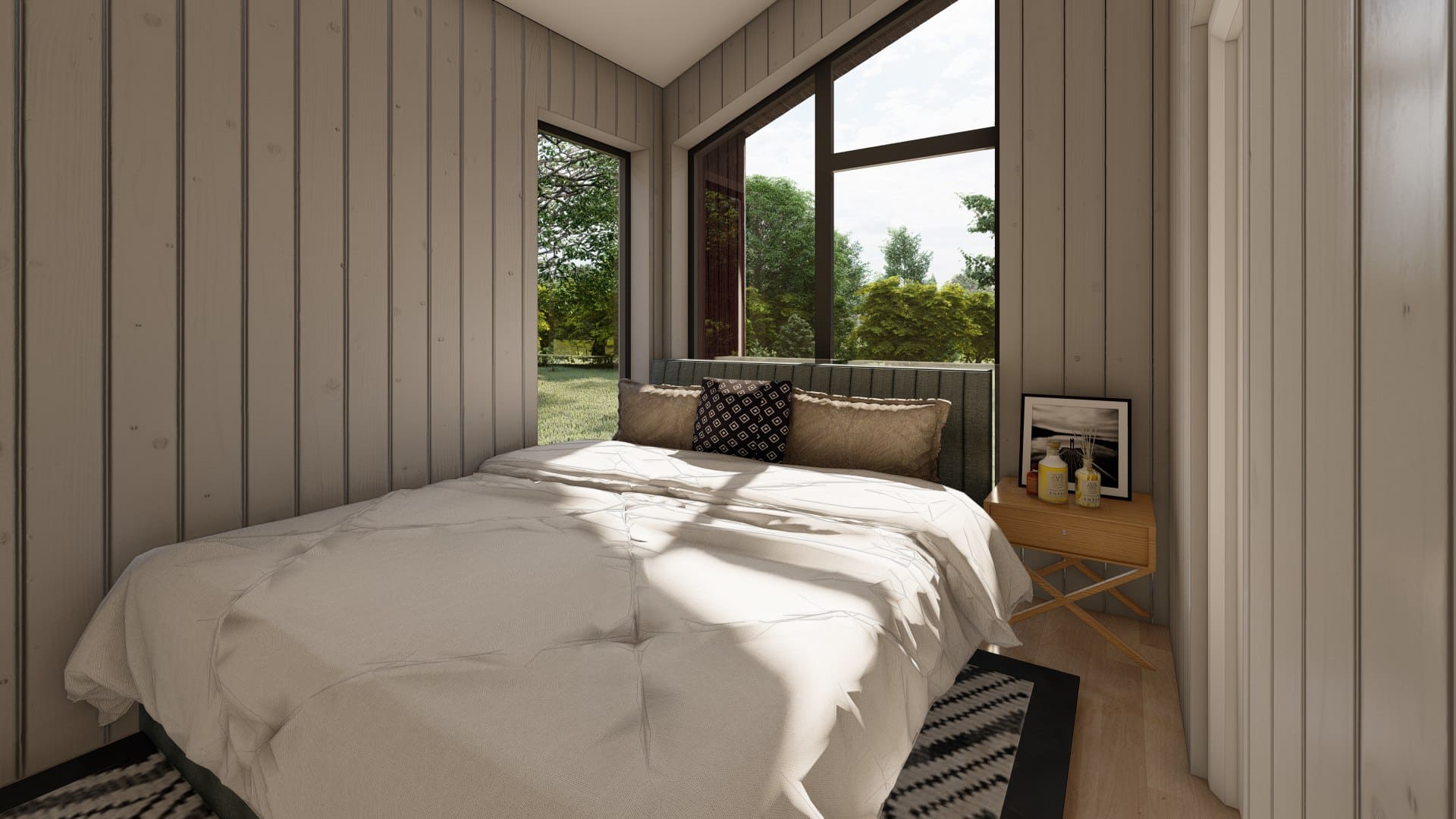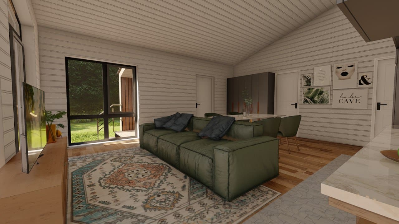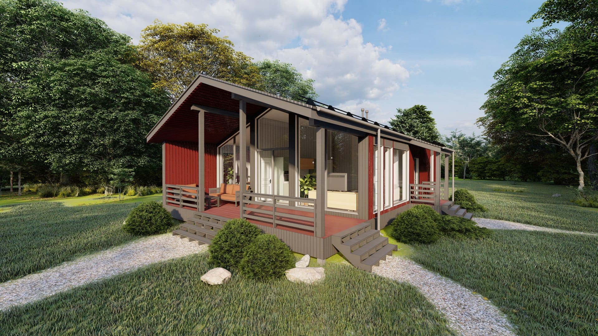 Идеальный вариант для семьи с 1-2 детьми. В уютным и просторном доме есть кухня-гостиная, 2 спальни, 1 санузел и терраса, которую можно использовать местом для семейных посиделок, обедов на открытом воздухе, приема гостей, а также для различных видов досуга, таких как чтение, игры, или просто отдыха.