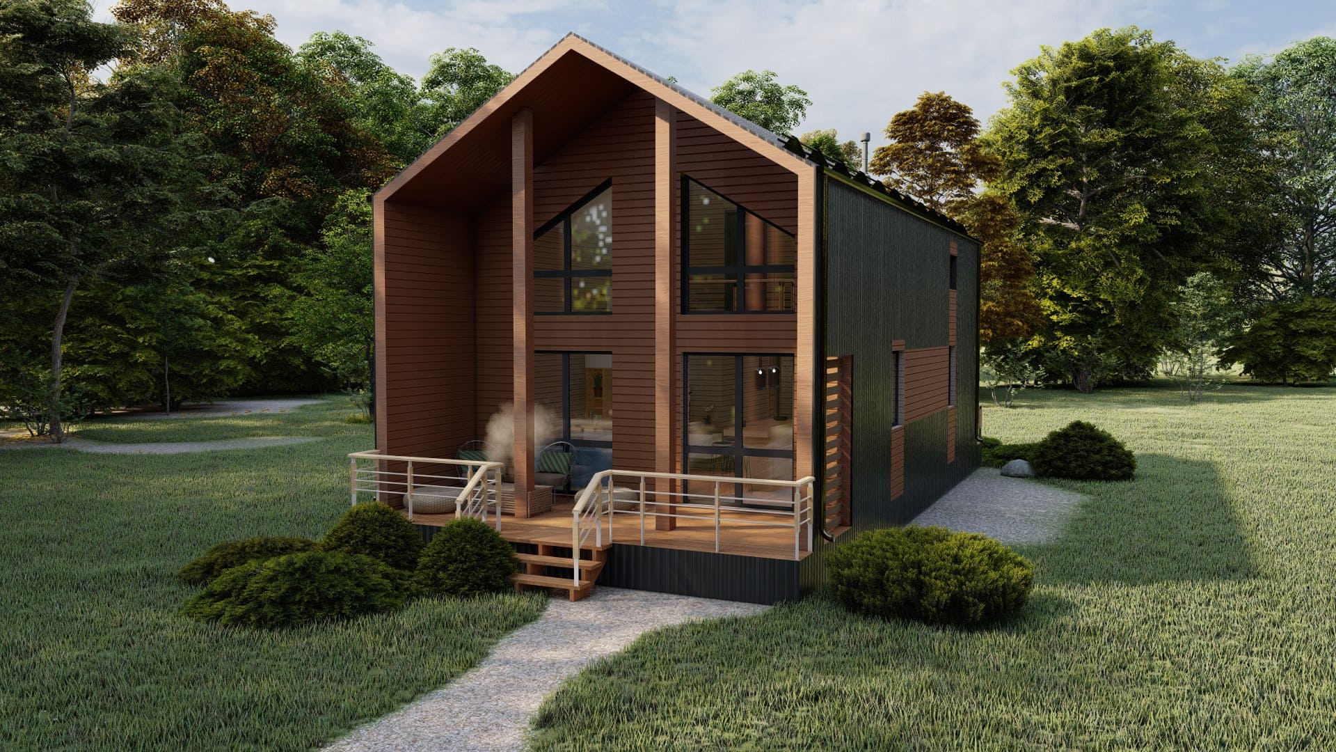 «А-Фрейм» — это красивый, уютный, практичный и стильный дом. Он является идеальным выбором для тех, кто ищет спокойный и комфортный загородный образ жизни.